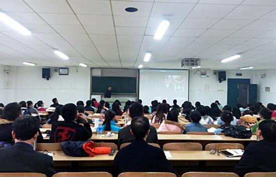 调研组专家首先在至善楼409教室听取了马克思主义学院彭正德教授的中国近现代史纲要课堂教学。彭教授对“五四”爱国主义运动进行了生动的讲授,讲述了马克思主义在中国的早期传播。课堂气氛活跃,师生积极互动,特别是相关视频展示让同学们获得了情感上的共鸣。