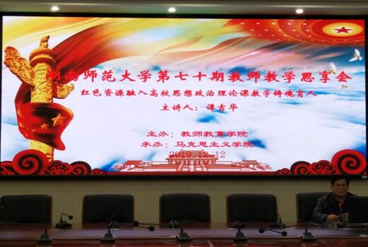 12月12日下午,我院在景德楼立德讲堂举行第70期教师教学思享会。副院长谭吉华教授以“红色资源融入高校思想政治理论课教育铸魂育人”主题分享了自己的教学研究成果。