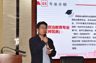 赵子林副院长介绍了思政教育专业的发展历程和建设现状,着重展示了专业的特色与优势。他强调思政教育专业办学底蕴深厚,学科支撑有力,师资力量雄厚,课程特色鲜明,实践教学优化,太阳集团tyc9728一流。他鼓励同学们强化专业意识,夯实专业功底。
