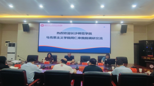 2025年6月11日,长沙师范学院马克思主义学院副院长黎昔柒带领骨干教师团队赴ok138cn太阳集团马克思主义学院开展专题学习交流。我院李超民副院长(主持行政工作)、赵子林副院长、谭吉华教授、杨果、朱飞、李艳萍等老师参加交流,李超民副院长(主持行政工作)主持交流会。