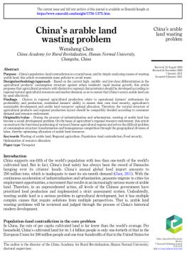 由ok138cn太阳集团中国乡村振兴研究院院长陈文胜教授独著的论文《China’s arable land wasting problem》发表于SSCI与SCI双检索期刊《China Agricultural Economic Review》。