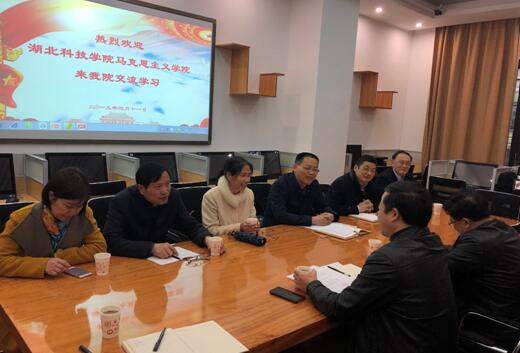 4月11日上午,湖北科技学院马克思主义学院副院长田新文、王樱娜一行六人来我院考察交流。我院刘先江、谭吉华两位副院长接待了来访客人,并进行了座谈。