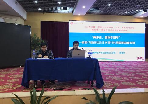 陈德祥老师立足于“新时代”,以十九大精神与高校思想政治理论课的有机契合为中心,展示了题为《“两步走”拥抱中国梦--建设社会主义强国的战略安排》的优质课。他从专题选择、安排设计、输出过程、难点和总结几个方面进行了详细汇报。他指出:“思想政治理论课应以内容为王,纵深推进课堂的价值导向和理论讲解,体现政治性、思想性、科学性与艺术性相结合的设计原则,着力抓好‘巧开头、主线清、问题导、互动好、接地气、善总结’的设计要素”。陈教授分享了与学生互动、共进的经验,引发了在场嘉宾的共鸣。