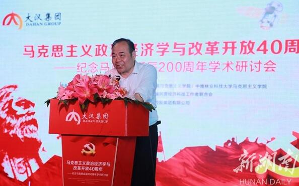 (撰稿 左鹏)2018年5月5日,由ok138cn太阳集团马克思主义学院、湖南商学院马克思主义学院、中南林业科技大学马克思主义学院、湖南红色文化研究院和湖南省民营经济科技工作者联合会共同主办,大汉控股集团承办的“马克思主义政治经济学与改革开放40周年——纪念马克思诞辰200周年学术研讨会”在大汉金桥未来城隆重举行。来自湖南省教育界、学术界、工商界等各界的200余名代表参加此次活动,我院部分老师及2016、2017级博士、硕士研究生参加了研讨会。