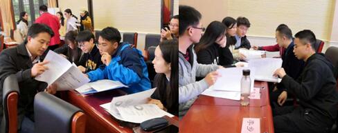 谭吉华公布了即将汇编的30篇调研报告,对撰写调研报告的同学们表示祝贺;指导老师朱海龙教授就调查性研究报告的撰写给同学进行了专题辅导,详细解读了写作目的、要求、侧重点和注意事项;各位指导老师分组和同学们进行了细致的讨论,指导同学们进一步修改和完善报告文本。