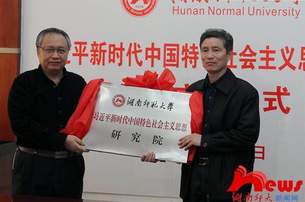 欧阳峣代表学校党委为学校习近平新时代中国特色社会主义思想研究院授牌。