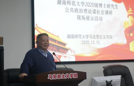 彭运石指出,在这次比赛中同学们很多选题都是非常好的,有现实意义和针对性。但要在调研的科学性和真实性、信度与效度上进行进一步的提升,调研结果要经得起实践的检验。同时指出近年来马克思主义学院在思政课程建设上作出了很多努力,作为博士生没有理由不去学好它,要走出课堂,要和社会调研和实践相结合去为国家发展作贡献,强调这次调研报告成果汇报是我们每位同学走向成长的重要一步,同学们要在之后加强训练,提升调研能力。