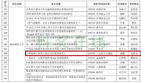 (通讯员张楠)近日,湖南省教育厅下发《关于公布2021年湖南省优秀博士、硕士学位论文名单的通知》(湘教通[2021]309号)。我院2016级硕士研究生胡鹏的硕士论文《高校硕士研究生政治信仰教育研究》(指导老师朱海龙教授)被评定为“湖南省优秀硕士学位论文”。