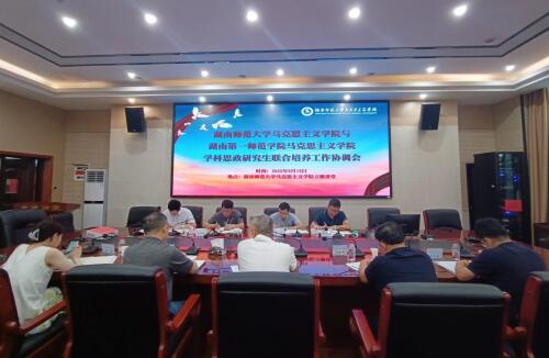 湖南第一师范学院马克思主义学院院长陈明、党委书记阮东彪一行,就联合培养学科(思政)教育专业研究生工作和学院进行了充分协商交流。双方就培养方案、学生管理、资源利用展开了深入探讨,并在导师分配、课程安排、实习实践、学位授予等方面达成广泛共识。