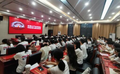 陈红桂为毕业生党员上了一堂题为《全面从严治党视域中的党内政治生活》的专题党课。他围绕“党内政治生活的重要地位”“党内政治生活的基本要素”“怎样严格规范党内政治生活”三个方面阐述了在全面从严治党的视域中党内政治生活的重要地位、基本要素和实践要求。他号召毕业生党员要从自身做起,加强党性修养,保持终身学习,严格规范党内政治生活。他希望全体毕业生党员继续深入学好党史,赓续共产党人精神血脉,以史鉴今,从百年党史中汲取砥砺奋进的精神动力,融会贯通,服务人民,奉献社会。