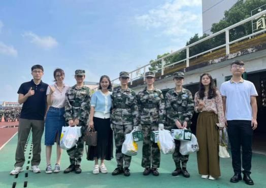 8月29日下午,学院党委副书记林峻带领全体辅导员到二里半校区田径场慰问我院参加学校2023年“四会”教练员集训的全体教官。