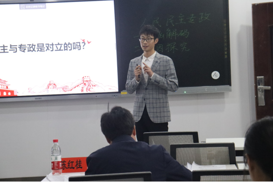10月12日晚进行微课暨答辩。活动现场,参赛选手进行了教学设计、多媒体课件制作、教育问答、片段试讲和板书设计共5项内容的展示。我院党委书记陈红桂、副书记林峻等9位评委老师对参赛的39名选手进行现场打分,伍屏芝、蒋国海、朱飞老师对参赛选手的表现进行总结和点评。