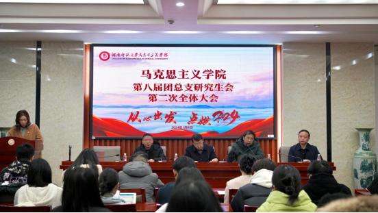 2024年1月4日下午,马克思主义学院第八届团总支研究生会第二次全体大会在博后楼三楼会议室顺利召开。马克思主义学院院长李培超、党委书记陈红桂、正处级组织员王绍平、副院长刘先江参加会议。科研办主任周律主持会议。