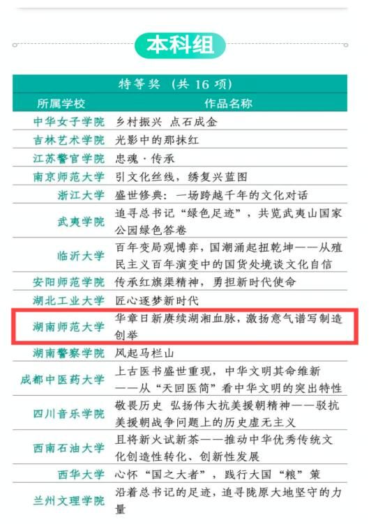 (通讯员:邓验 吴虹佳)近日,教育部公布2023年习近平新时代中国特色社会主义思想大学习“领航计划”主题教育活动评选结果,我校马克思主义学院推送的作品《华章日新赓续湖湘血脉,激扬意气谱写制造创举》在“新思想引领新征程·新青年建功新时代”--第七届全国高校大学生讲思政课公开课展示活动中荣获本科组特等奖。