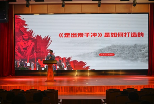 观看完情景剧之后,同学与老师们共同聆听了以“《走出炭子冲》是如何打造的”为主题的讲座。刘少奇故里管理局副局长熊学爱和刘少奇同志纪念馆宣传教育部副部长肖煊一详细介绍了《走出炭子冲》这一项目的创建与推进过程,强调未来纪念馆将继续挖掘馆藏红色资源,拓宽形式、寓教于乐,在馆校联动上下工夫,推动常态化公演。