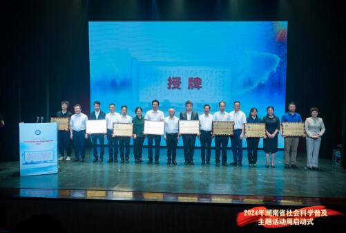 (通讯员 胡馨月)今年5月,我校马克思主义学院“马克思主义经典著作宣传普及基地”获评省级社科普及基地。5月17日,由中共湖南省委宣传部、湖南省社会科学界联合会等单位主办的“三高四新·社科解码”2024年湖南省社会科学普及主题活动周启动式在长沙举行。启动式上,宣读了《关于2024年新建湖南省社科普及基地名单的通报》并为基地代表授牌,马克思主义学院院长李培超作为基地负责人参加了授牌仪式。