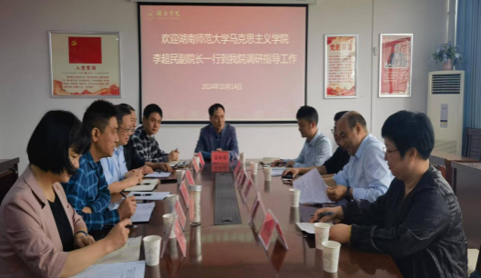 (通讯员 李艳萍)10月14日上午,副院长李超民、谭吉华带队赴湘南学院开展大思政课实践教学交流。湘南学院校长雷小勇,评估建设处处长李爽霞,马克思主义学院院长卿定文,党委书记张子清,副院长李月、周莲英等热情接待。