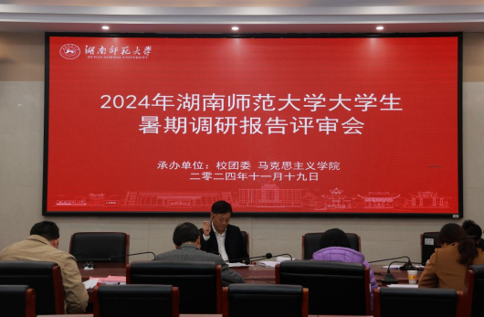 11月19日下午,由校团委和马克思主义学院联合组织的“2024年大学生暑期社会实践调研报告评审会”在学院立德讲堂举行。王辉副校长担任评审组长,学院党委书记陈红桂、校团委副书记胡滢、谭吉华教授等10多位老师参加评审,赵子林副院长主持评审会。