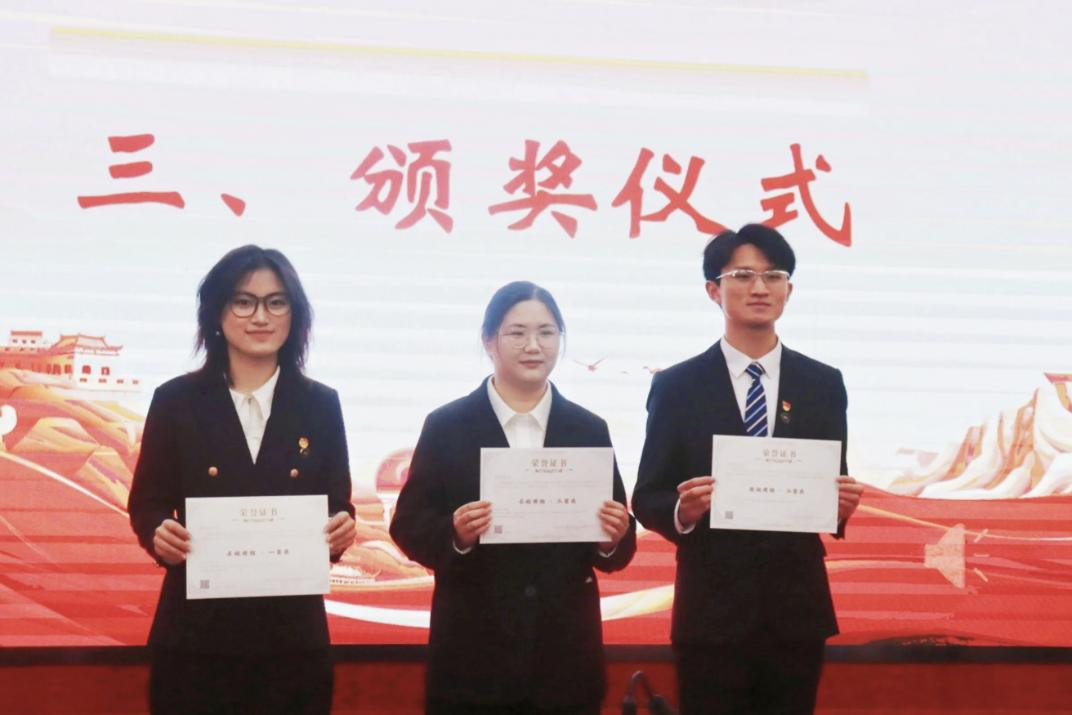 徐书华、何扬波老师依次为第八届全国高校大学生微电影展示活动、第八届全国高校大学生讲思政课公开课展示活动获奖团队颁奖。