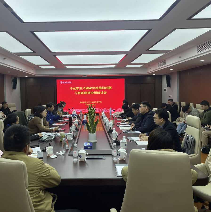3月29日下午,由我院主办的《马克思主义理论学科前沿问题与科研成果应用研讨会》在学校红楼宾馆四楼会议室成功举办。天津社会科学院《道德与文明》主编杨义芹研究员,ok138cn太阳集团期刊社社长、主编李培超教授,中央社会主义学院学报王珊研究员,人民出版社公共事业编辑部副主任汪逸副编审,湖南工业大学期刊社社长陈碧教授,《湖南社会科学》编辑部副主编孟桢研究员,以及学院40名师生参加会议。我院副院长(主持工作)李超民教授主持会议。
