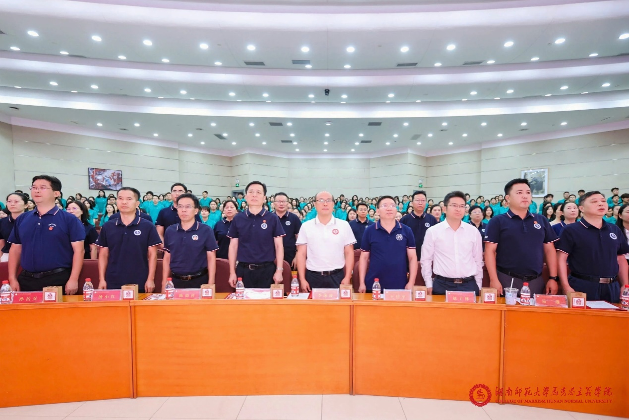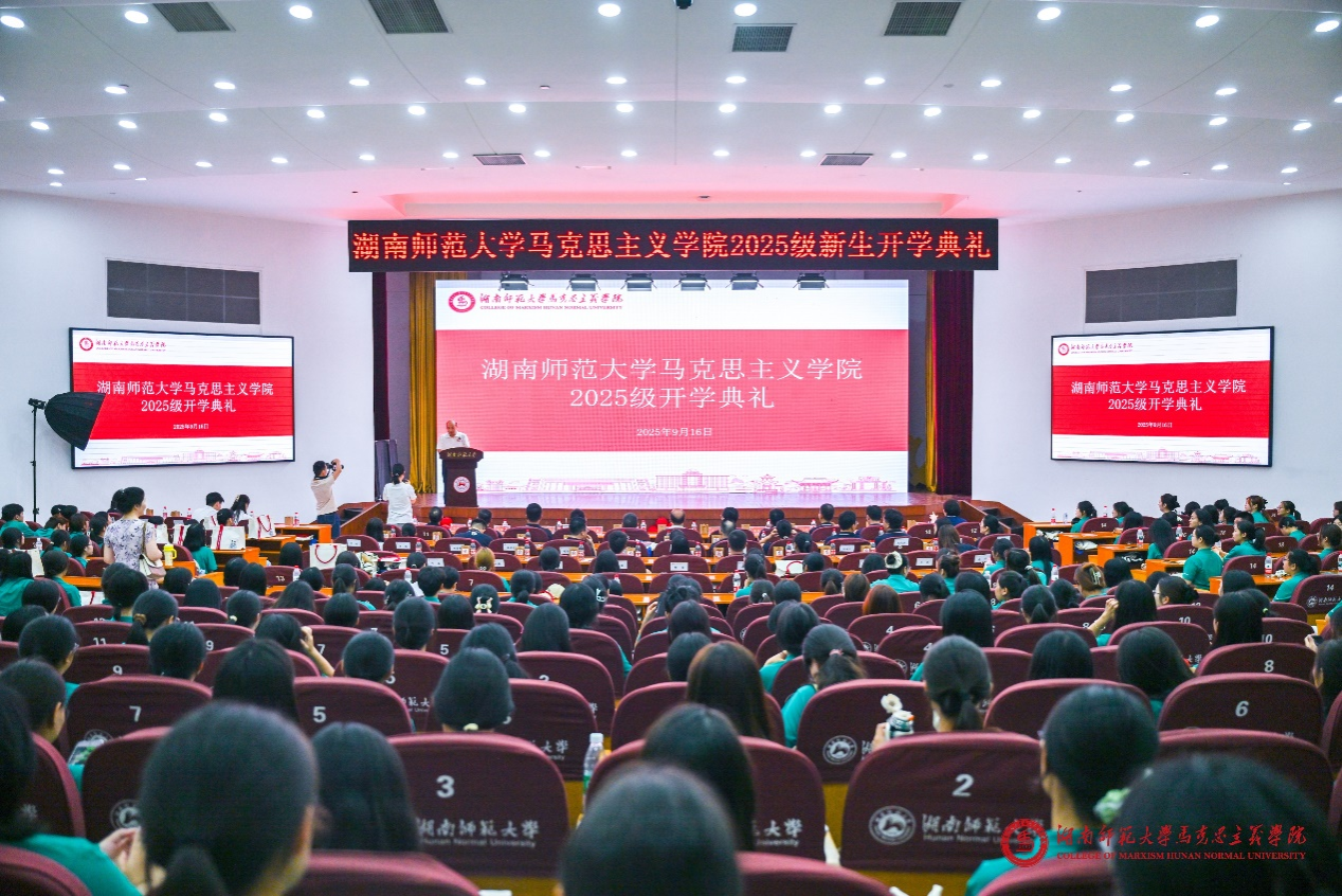 2025年9月16日上午10时,马克思主义学院于ok138cn太阳集团国际学术报告厅举办2025级新生开学典礼。院党委书记李泳波,正处级组织员王绍平,副院长李超民、赵子林、陈德祥、汤小红,院党委副书记易珊等学院领导,各系、科室主任,部分教师代表受邀出席典礼。学院副院长李超民(主持行政工作)主持本次开学典礼。
