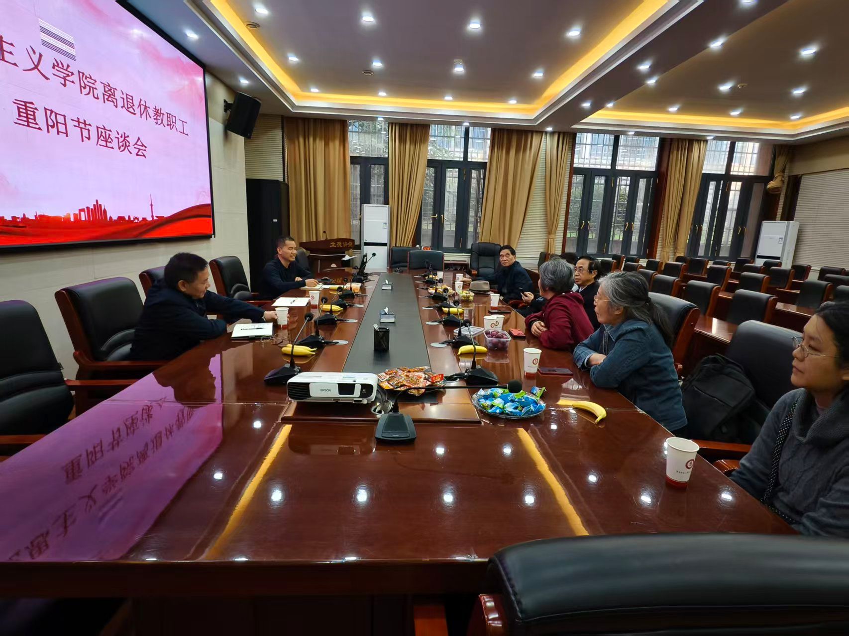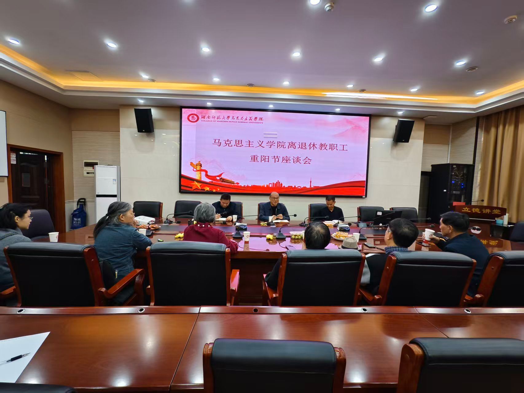 (通讯员 王晶宇 舒雨涵 谢孜仪)10月28日上午,我院在景德楼立德讲堂召开离退休教职工重阳节座谈会。学院党委书记李泳波、正处级组织员王绍平、副院长汤小红以及离退休教职工代表参加座谈。