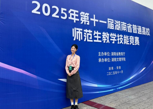 2025年11月8日,第十一届湖南省普通高等学校师范生教学技能竞赛在湖南文理学院落下帷幕,我院2023级思想政治教育三班袁乐怡同学在伍屏芝老师的指导下,凭借扎实的专业基础与优异的现场表现,以明显优势斩获中学教育文科三组一等奖。