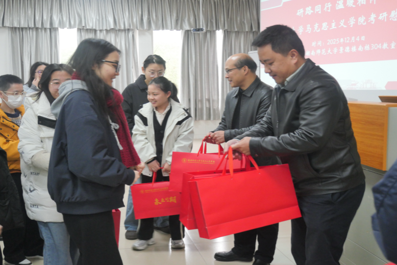 (通讯员 蒲鑫睿 何莉莉)为鼓舞考研士气,提升考研学子的备考信心,营造和谐温暖的学院氛围,12月4日上午,我院于景德楼304开展2026届考研学子慰问活动。院党委书记李泳波、副院长汤小红、党委副书记易珊、教授蒋国海、思政系主任杨果、学工办主任章杨、团委书记吴炫达共同参加此次活动。