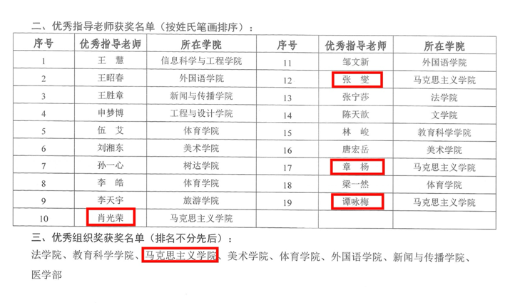 我院共获5项奖励。其中,研究生辛灿荣获特等奖、研究生江洲荣获一等奖、本科生张予涵荣获二等奖、研究生罗嘉宁荣获三等奖;学院荣获优秀组织奖。同时,谭咏梅、张燮、章杨、肖光荣等4位老师获评优秀指导老师。