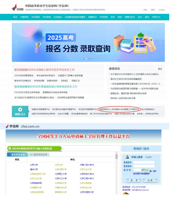 1.请同学登陆“中国高等教育学生信息网(学信网)” → 快速入口 → 全国同等学力人员申请硕士学位管理工作信息平台进行注册