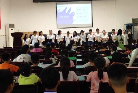“炎阳暑期实践团”团长杨金鑫同学向学生及家长介绍了实践团的情况。他重点就接送秩序和饮食安全进行安全主题教育,详细解答了部分家长提出的疑问。