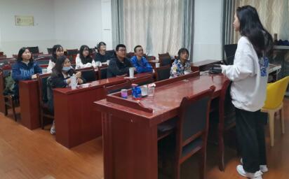 3位负责人及9名志愿者依次进行自我介绍;戴佳悦讲解了工作的具体内容,为志愿者分配工作;曾利伟、何行鑫分别向志愿者提出了工作目标、工作计划和相关宣传工作的具体要求。