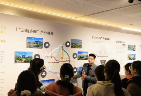 在现场,肖老师先后在“你好湘江”“动力新区”“匠心城市”“向往未来”四个展区结合课程知识系统讲解什么是中国式现代化、中国式现代化好在哪、中国式现代化的湘江答卷是怎样、中国式现代化何处去等问题。在现场教学过程中,师生之间进行了有效互动;不少学生还切身体验了新兴科技产品,从中汲取砥砺前行的智慧和决心。实践教学结束后,肖老师进行了课程总结。