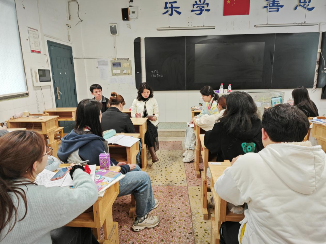 实习教师从课堂效果、授课方式等方面进行自我评价与反思。同组队员围绕教学内容的逻辑结构、教学环节的设计、教学方法的运用、教学重难点的把握、教学的神态语言、课件的制作等方面,对实习教师的教学提出了中肯的评价与建议。