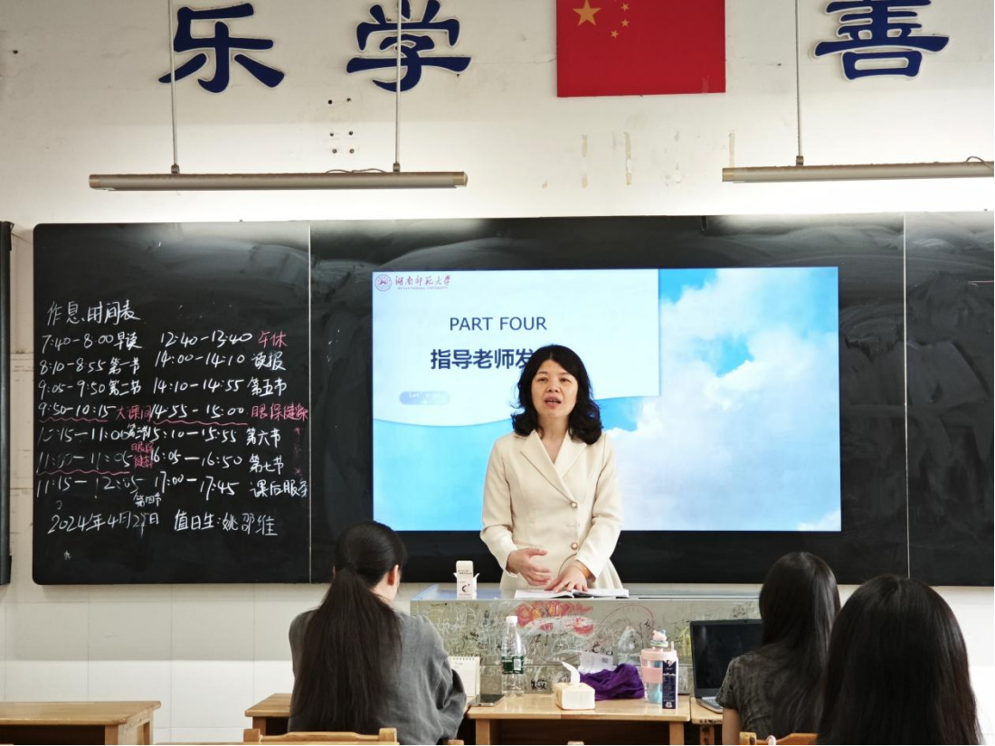 全体实习队队员分别从教育教学、班级管理方面对前期实习进行感悟分享。在教育教学上,队员们逐步适应了从学生到老师的角色转换;在班级管理上,队员们分享了各自的管理经验,包括管理方法、心得体会等。