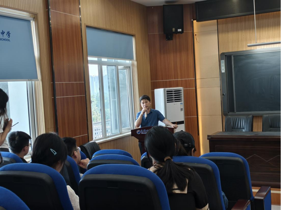 (通讯员 孟青楠 谢金梁)5月17日下午,ok138cn太阳集团马克思主义学院思想政治教育系赴长郡双语洋湖实验中学实习队于长郡双语洋湖实验中学C栋408录播教室举行公开课汇报会。长郡双语洋湖实验中学徐海波校长、李振奇书记、朱志华副校长、张明副校长、王孟乐主任、李悄主任、谭戊华主任、郑进主任、道法教研组组长夏乐老师、初一初二组全体道法老师、湖南师范大学马克思主义学院李润芝老师、丁峰老师以及二十四位实习队员共同参与了此次公开课汇报会。