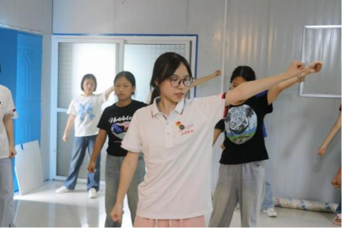 实践团成员关旭琪进行啦啦操教学
