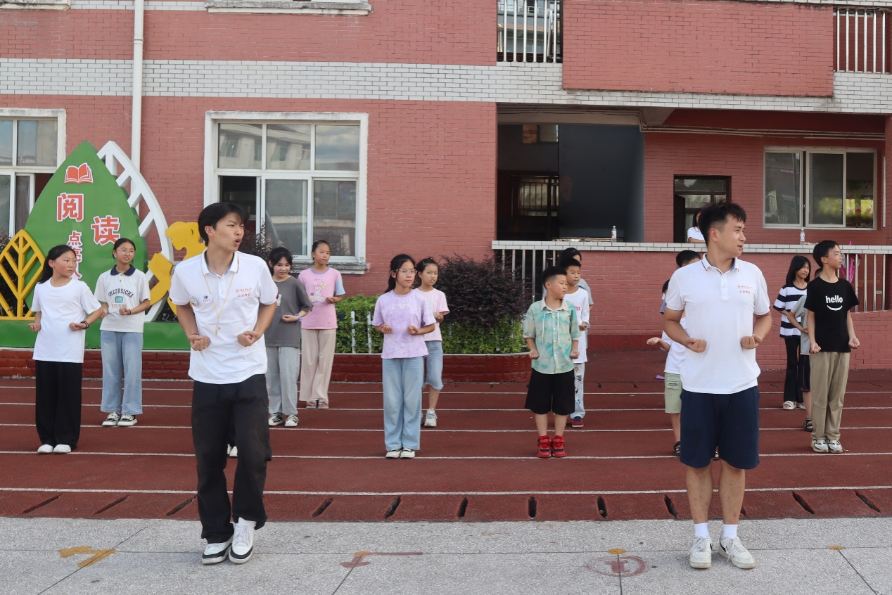 开营仪式上,“她山之石”团队队长组织学生签到,简要介绍团队组成、教学安排以及活动期望,并着重强调了夏令营期间学生的安全问题。接着,团队成员按照内部分组依次上台进行自我介绍并表达对夏令营活动的想法。随后18名学生进行自我介绍,团队成员按照破冰活动安排组织学生进行多种趣味游戏,帮助活跃气氛、打破沟通屏障。下午团队成员开展“趣味折纸”课程,激发学生的创造力和想象力;在“我是小小科学家”课程中,团队成员与学生共同进行科学实验,培养学生的动手能力、创新能力和科学思维;最后开展的特色体育活动课程帮助学生增强耐力和专注力,使学生提前适应夏令营课程模式。