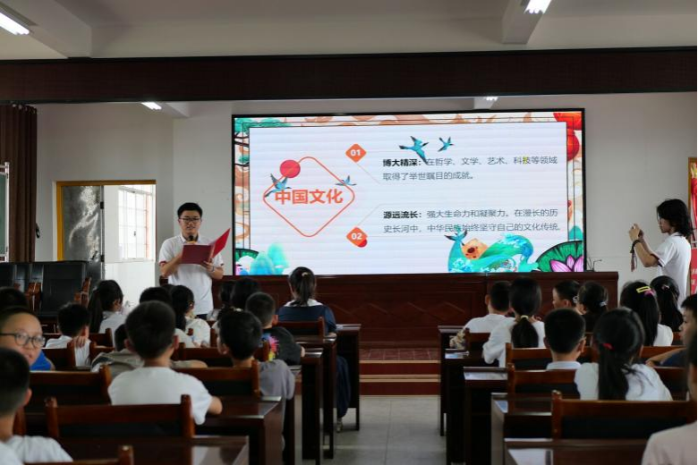 (通讯员 李湘 任泓伽 姜文婷)7月19日上午,马克思主义学院赴湖南省常德市桃源县陬市镇暑期社会实践团(以下简称“实践团”)于陬市小学五楼报告厅开展以“觉醒传统之魂,筑牢自信之基”为主题的第四期红色论坛系列活动。实践团成员陈晗主讲,陬市小学暑期夏令营学生及实践团成员全体参与。