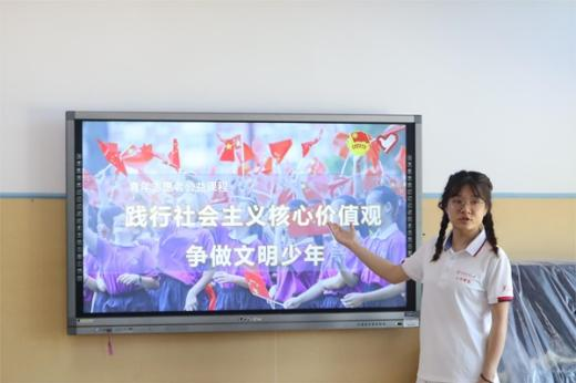 此次课程由实践团教学组老师王曼组织开展。课堂中,实践团成员通过情景创设的方式向同学们介绍价值观与个人成长的关联,让学生在参与中体验合作、友爱、尊重等价值观。同时,实践团成员还通过讲解和讨论的方式,引导学生思考和分析各种情境中的价值观问题,学会辨析不同价值观。此外,实践团成员还介绍了许多时代楷模,带领学生从中感悟价值观对人的一生甚至社会的影响。课后,老师发放了有关社会主义核心价值观图纸,并让学生们在图纸上写下自己的理解,使学生们通过图画和文字的形式加深记忆。