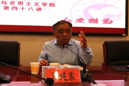 邓纯东老师用马克思主义立场、观点和方法对特朗普挑起的中美贸易战进行了深入分析。关于特朗普挑起中美贸易战的原因,他澄清了“美国吃亏论”、“中国骄傲论”、“中国政策错误论”、“中国威胁论”等错误论调,阐述了中美贸易战的真正原因:中美贸易战是美欧发达资本主义国家前所未有的经济危机、社会危机的必然表现;是中美两国政治制度、意识形态对立在当前的根本表现;是欧美发达资本主义国家民粹主义思潮的发展在美国内外政策上的集中表现;是美国霸权主义国家战略在当前世界的突出表现;是美国自由、民主、人权、法治价值观和国家制度虚伪性的典型表现。他对中美贸易战的发展趋势作了预判:贸易战以及由此衍生的科技战、金融战等不可避免;在这场较量中,中国“速胜论”是毫无根据的,“亡国论”更是是错误的;合作交流是长期的,矛盾和斗争也会贯穿始终,我们要辩证的看待中美贸易战,始终要有打赢中美贸易战的底气和信心。