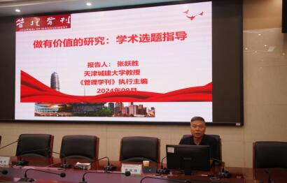 9月21日上午,《管理学刊》执行主编、中国政治经济学学会副会长、天津城建大学教授张跃胜应邀为我院师生举办以“学术论文选题和期刊投稿”为主题的讲座。副院长李超民教授主持讲座,邓验、戴晓慧等老师以及部分博士、硕士生参与了此次讲座。