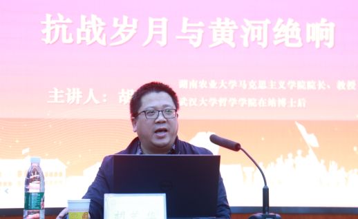 11月11日,湖南农业大学马克思主义学院院长胡艺华教授莅临我院,作主题为“抗战岁月与黄河绝响”的学术讲座。谭吉华教授主持讲座,我院部分博士、硕士研究生参加。