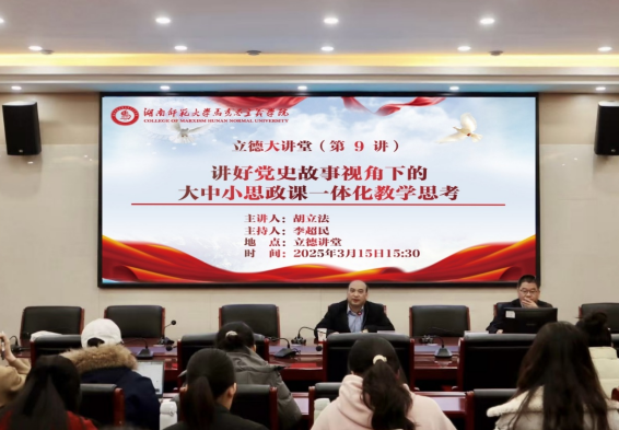 3月15日下午,扬州大学马克思主义学院院长、博士生导师胡立法教授莅临我院立德讲堂,作主题为“讲好党史故事视角下的大中小思政课一体化教学思考”的学术讲座。陈德祥副院长及部分师生参加,李超民副院长(主持行政工作)主持讲座。