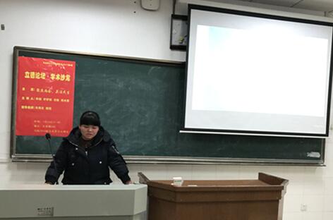 周水蓉同学对“扶贫热点问题”进行了论述,以一张“马院的萝卜”为话题引入点,并给同学们放映了一个国务院扶贫办主任关于扶贫问题的讲话视频。在2017年政府工作报告中指出,2017年有两个扶贫总目标:一是今年再减少农村贫困人口1000万以上,二是完成易地扶贫搬迁340万人。然后分别从扶贫标准、扶贫具体行动、扶贫资金、扶贫质量四个方面阐述了关于扶贫问题的各个关注内容。其中,重点阐述了2017年热点词汇如“数字脱贫”、“摘帽”问题等方面论述了扶贫现状。最后和同学们一起探讨了“扶贫是政府的事情还是大众的事情”这一问题。对于扶贫问题讨论的目的在于呼吁同学们关注时政热点、关注国家大事,扶贫要以国家作为带头人,社会与个人积极参与,建成全面小康社会。