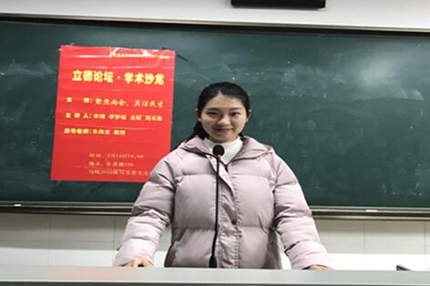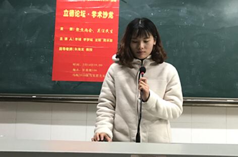 (撰稿:宋树青 摄影:尹姣迪)2017年3月14日晚上七点我院于至善楼106教室举办了16级硕士研究生第四期“立德论坛·学术沙龙”。本次沙龙以“聚焦两会,关注民生”为主题,来自思想政治教育专业的李靖、龙姣、李梦瑶、周水蓉为本次沙龙的主讲人,此次活动邀请朱海龙教授作为指导嘉宾,并由宋树青主持。我院16级全体硕士研究生参加了本次沙龙。
