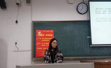 (撰稿:宋树青 摄影:李甜甜)2017年4月6日晚上七点,我院于至善楼206教室举办了16级硕士研究生第五期“立德论坛·学术沙龙”。本次沙龙以“异化劳动理论的发展脉络及其现实意义”为主题,来自马克思主义理论专业的洪赞、骆琳琳、孙盼、宋树青、王少菲为本次沙龙的主讲人,此次活动邀请朱海龙教授作为指导嘉宾,并由李甜甜、常荣主持。我院16级全体硕士研究生参加了本次学术沙龙。