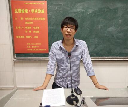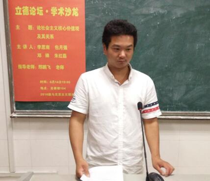 (撰稿:李甜甜 摄影:尹姣迪)2017年06月14日晚上七点,我院于至善楼104教室举办了16级硕士研究生第八期“立德论坛·学术沙龙”。本次沙龙以“社会主义核心价值观及其关系”为主题,马克思主义基本原理朱红磊,马克思主义中国化包月强、邓禅为本次沙龙的主讲人,此次活动邀请邢鹏飞老师作为指导嘉宾,并由李作纯为主持人。我院16级全体硕士研究生参加了本次沙龙。