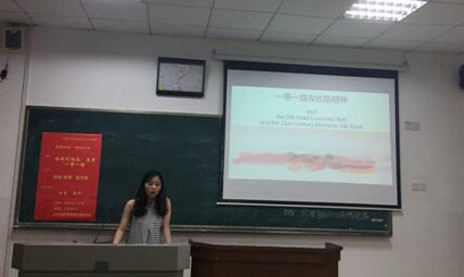 廖倩同学由古代丝绸之路到郑和下西洋再到明末清初的东西往来互鉴着手,讲述了一带一路的历史渊源,两千多年的交往历史证明,只要坚持团结互信、平等互利、包容互鉴、合作共赢,不同种族、不同信仰、不同文化背景的国家完全可以共享和平,共同发展。再论述了丝路精神“和平合作,开放包容,互学互鉴,互利共赢”的具体内涵,最后提出了在弘扬践行丝路精神过程中要促进文明互鉴、尊重道路原则、坚持合作共赢、倡导对话和平。