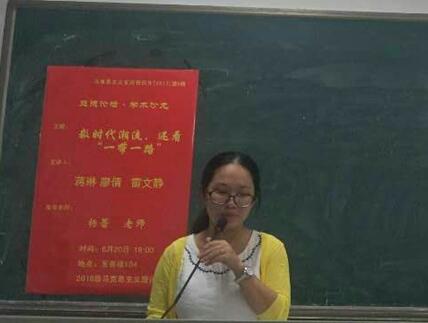 (撰稿:蒋琳 摄影:尹姣迪) 2017年6月20日晚7:00-9:00,马克思主义学院2016级硕士研究生学院举办了一场以“数时代潮流,还看‘一带一路’”为主题的学术沙龙,来自思想政治教育专业的蒋琳、雷文静以及来自马克思主义中国化专业的廖倩为本次沙龙的主讲人,此次活动邀请杨蕾老师为指导老师。我院16级全体硕士研究生参与了此次学术沙龙。